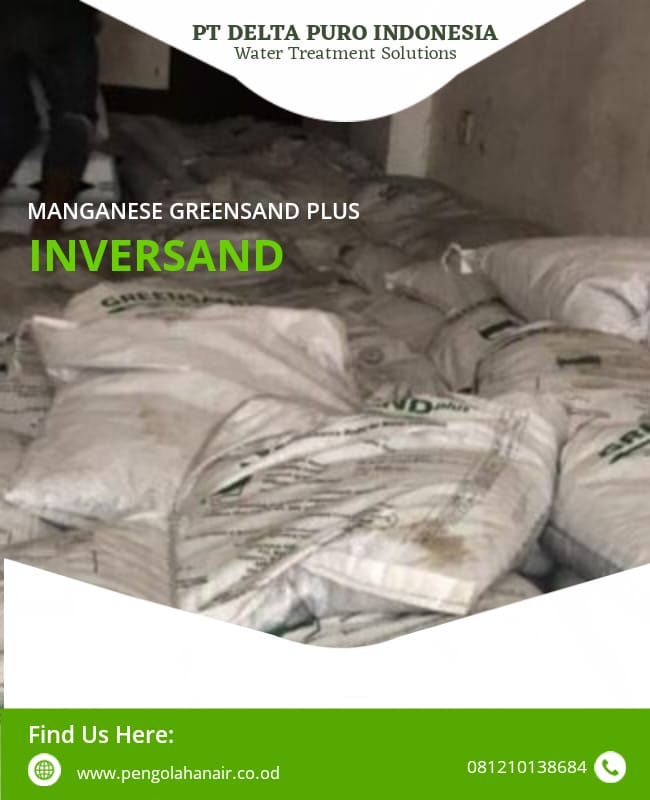 Manganese Greensand Plus adalah media sand filter berbentuk butiran hitam yang terbuat dari lapisan pasir silika dengan mangan dioksida. Lapisan mangan dioksida ini berfungsi sebagai katalis dalam oksidasi reaksi reduksi besi dan mangan. Manganese Greensand Plus memiliki ukuran yang efektif yang sama, keseragaman pada kepadatan, berat, kapasitas, dan laju aliran. Manganese Greensand Plus digunakan untuk menghilangkan zat besi, mangan, hidrogen sulfida pada air dan dapat digunakan pada kondisi air yang memiliki kadar silika rendah dan dapat mengurangi nilai TDS dan hardness pada air. Manganese Greensand Plus ini juga dapat digunakan pada proses filterisasi baik vertikal maupun horisontal dan pada sistem filter gravitasi. PT DELTA PURO INDonESIA menyediakan Manganese Greensand Plus keluaran dari pabrikan Inversand, yang dikemas dalam kemasan 20 kg per bag.